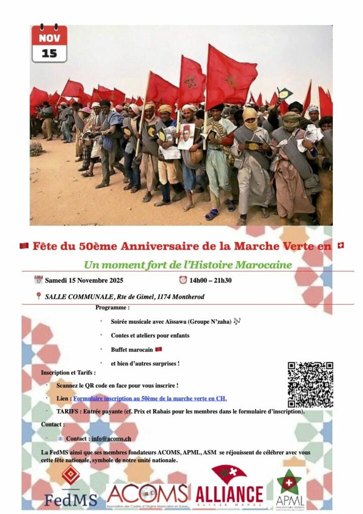 50 ANS D'HISTOIRE : CÉLÉBREZ AVEC NOUS EN SUISSE ch L'ANNIVERSAIRE DE LA MARCHE VERTE ma